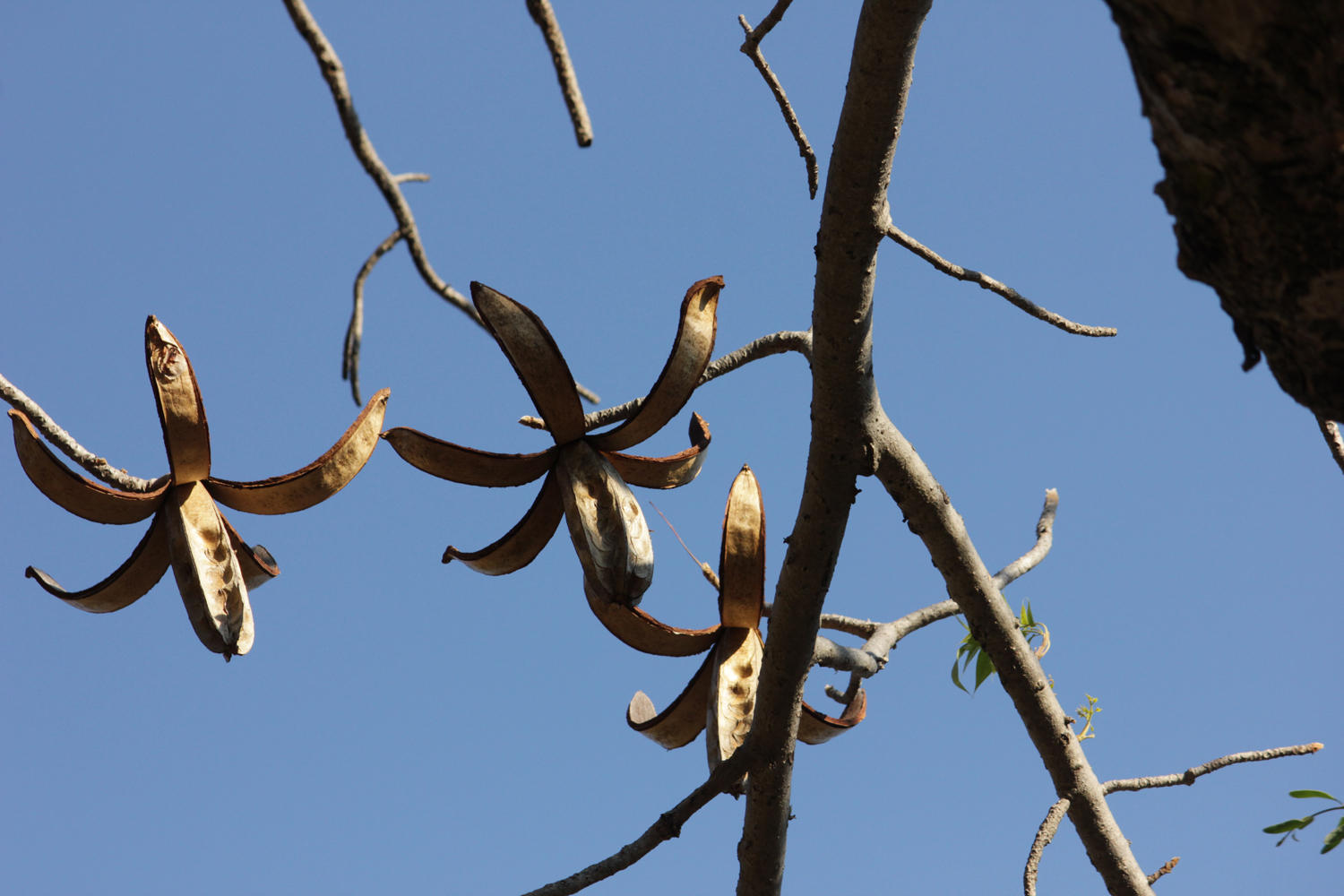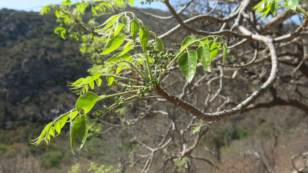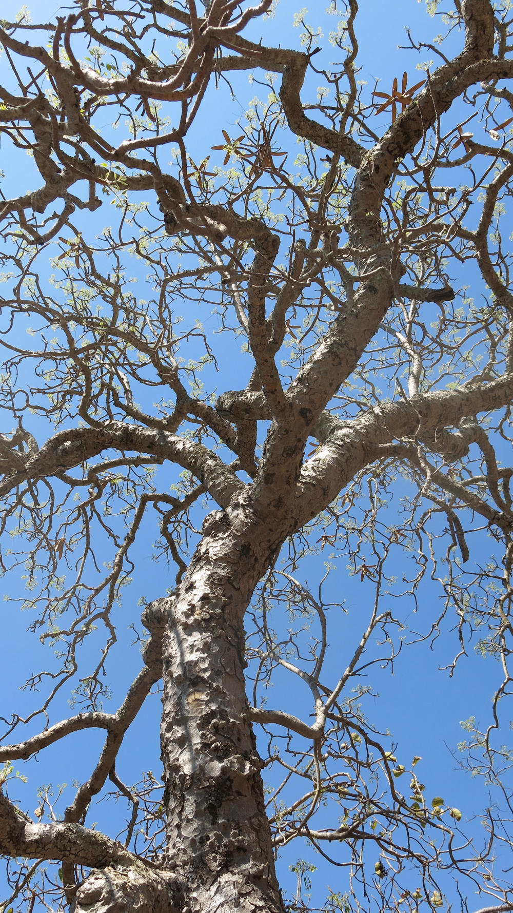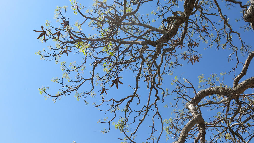 チアマ(Entandrophragma spp.)はアフリカ熱帯林に分布するセンダン科に属する落葉高木群で、高さ40〜60 m、幹径2 mに達する巨木となる種を含み、板根や柱状根を持つことが多く、葉は5~9対の小葉を持つ羽状複葉、花は雌雄異株で小さな黄白色を密に咲かせ、果実は5裂蒴果から多数の翼ある種子を放出します。