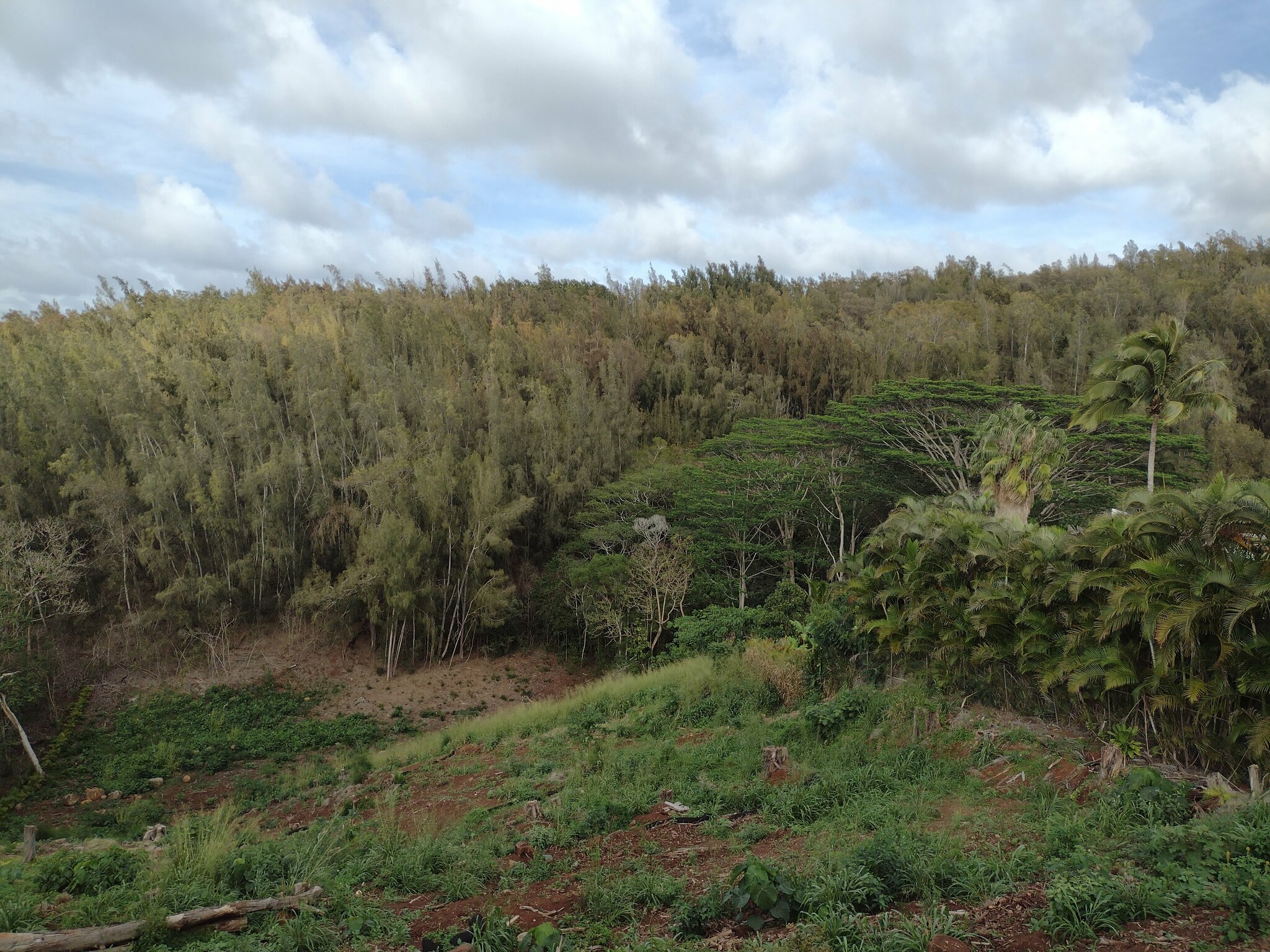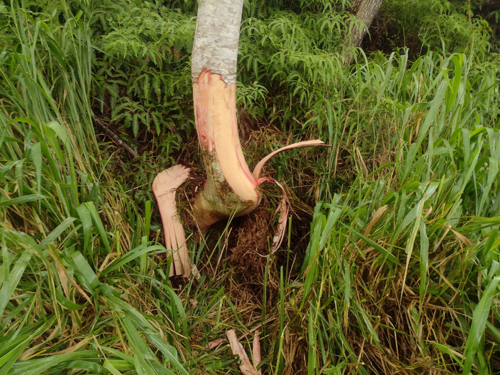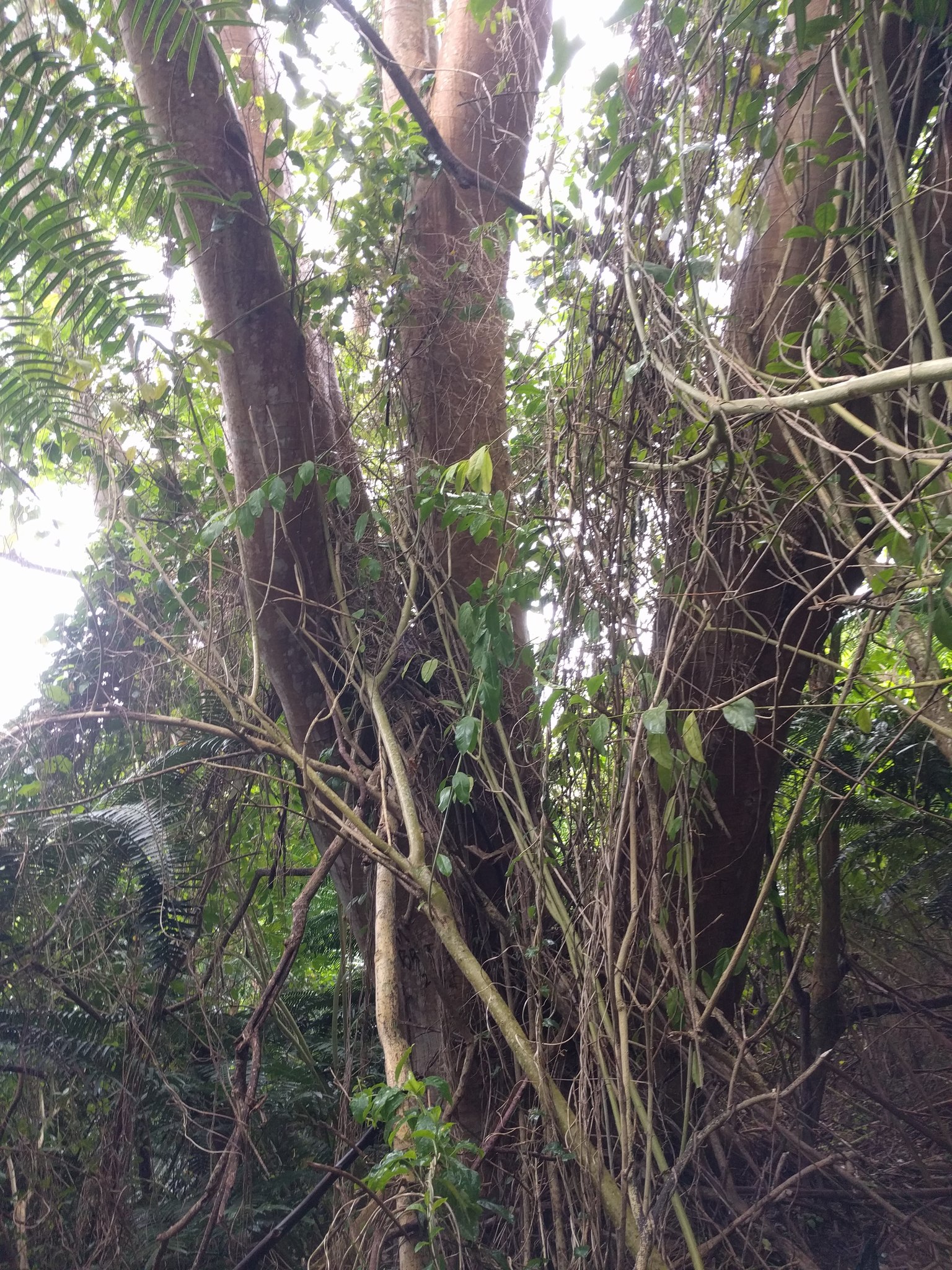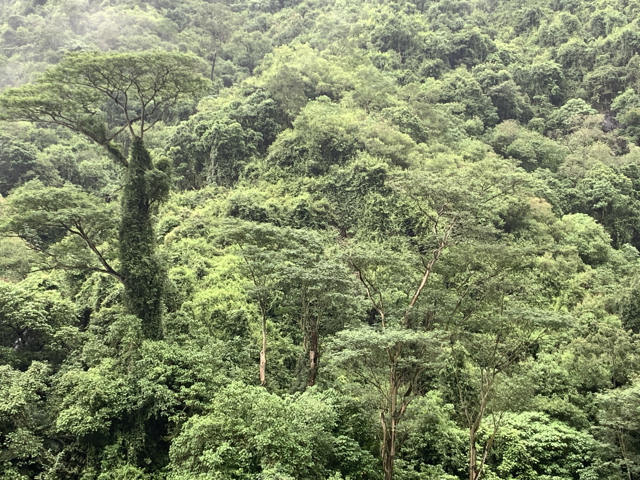 フォルカタ(Falcataria moluccana)はマルーク諸島やニューギニア原産のマメ科落葉高木で、高さ30〜40メートル、幹径1メートル以上に成長し、二回羽状複葉の葉と細長い豆果を特徴とし、窒素固定能力を持ち土壌改良やアグロフォレストリー(茶やコーヒー、ココアなどの陰樹)に活用される一方、極めて生長が速く自然林を侵食し侵略的外来種として報告されている。